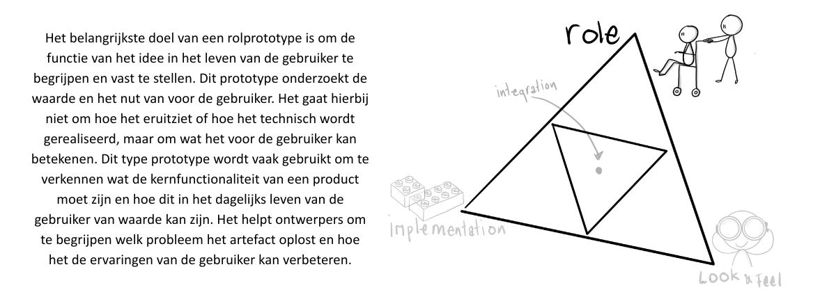 Prototypes maken is een onmisbaar onderdeel van ontwerpen, vooral als je iets interactiefs ontwikkelt, zoals een app of een digitaal product. Prototyping maakt het mogelijk om praktisch te testen en je ideeën verder te ontwikkelen, zodat je ontwerp echt aansluit bij de wensen van de gebruiker. In het werk van Houde en Hill (1997), wordt duidelijk gemaakt dat prototypes vooral dienen om de belangrijke ontwerpvragen te verkennen die betrekking hebben op de rol (role), het uiterlijk (look & feel) en de implementatie (Implementation) van een artefact. Er zijn drie soorten vragen die je met een prototype kunt onderzoeken: