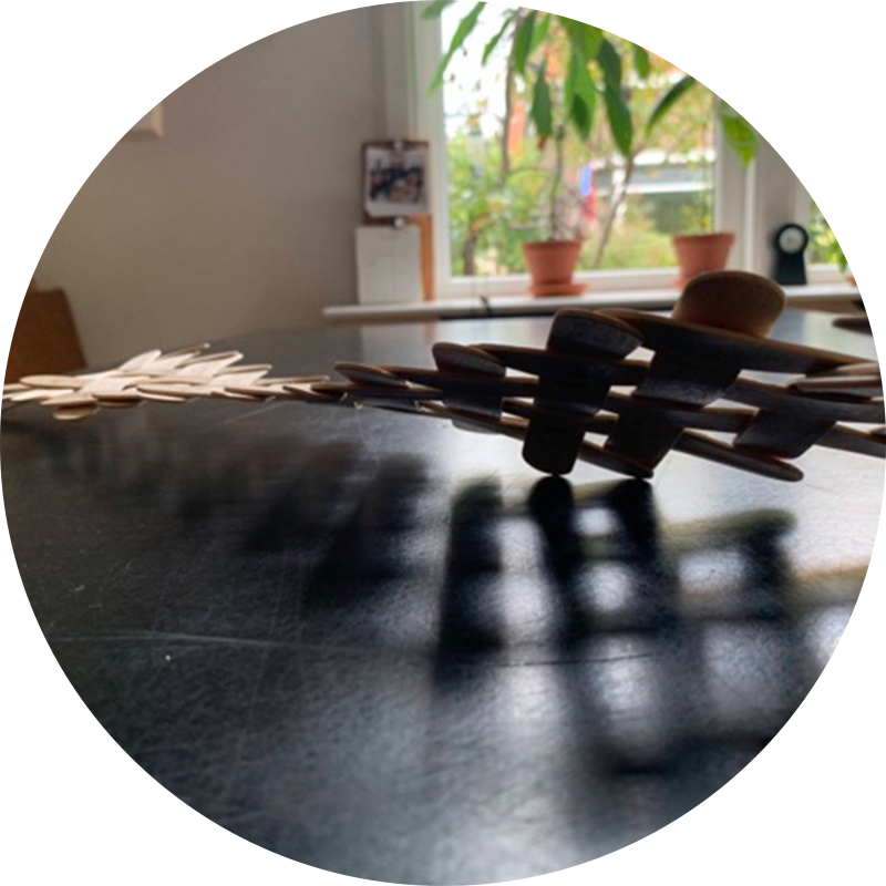 Met deze techniek krijg je een ander perspectief op het ontwerp. Hiervoor heb ik het cruciale voorwerp gekozen, in dit geval de tafel. Ik heb mezelf de vraag gesteld: “Hoe zou ik me voelen als ik deze tafel was?” Er kwamen gevoelens op zoals machteloosheid, eentonigheid, saaiheid, platheid en vlakheid. Vervolgens overwoog ik hoe ik zou reageren vanuit deze gevoelens. Ik dacht erover om mezelf meer in beweging te zetten, dynamischer te worden en de wereld te zien. Concreet heb ik dit in het ontwerp vertaald naar de tafel flexibiliteit en draagbaarheid.