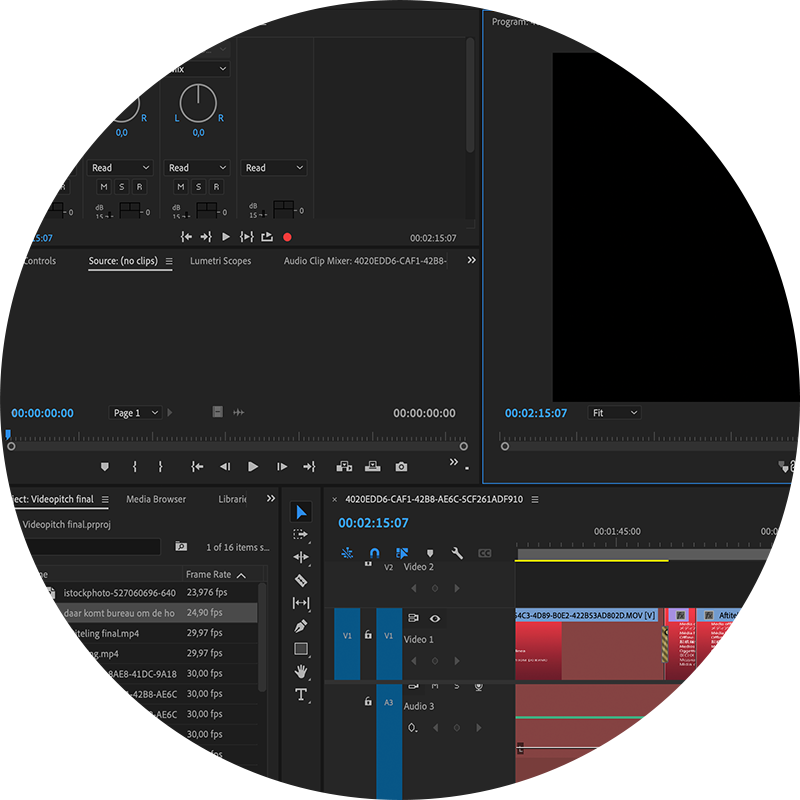 Videobewerking. De videopitch is gecreëerd uit verschillende camera opnamen en digitale animaties. Er zijn sfeerbeelden, tekenanimaties, live opnames en 3D animaties verwerkt. Ik heb geleerd te selecteren, te ordenen, toe te voegen en waar nodig geluid en beeld synchroniseren.